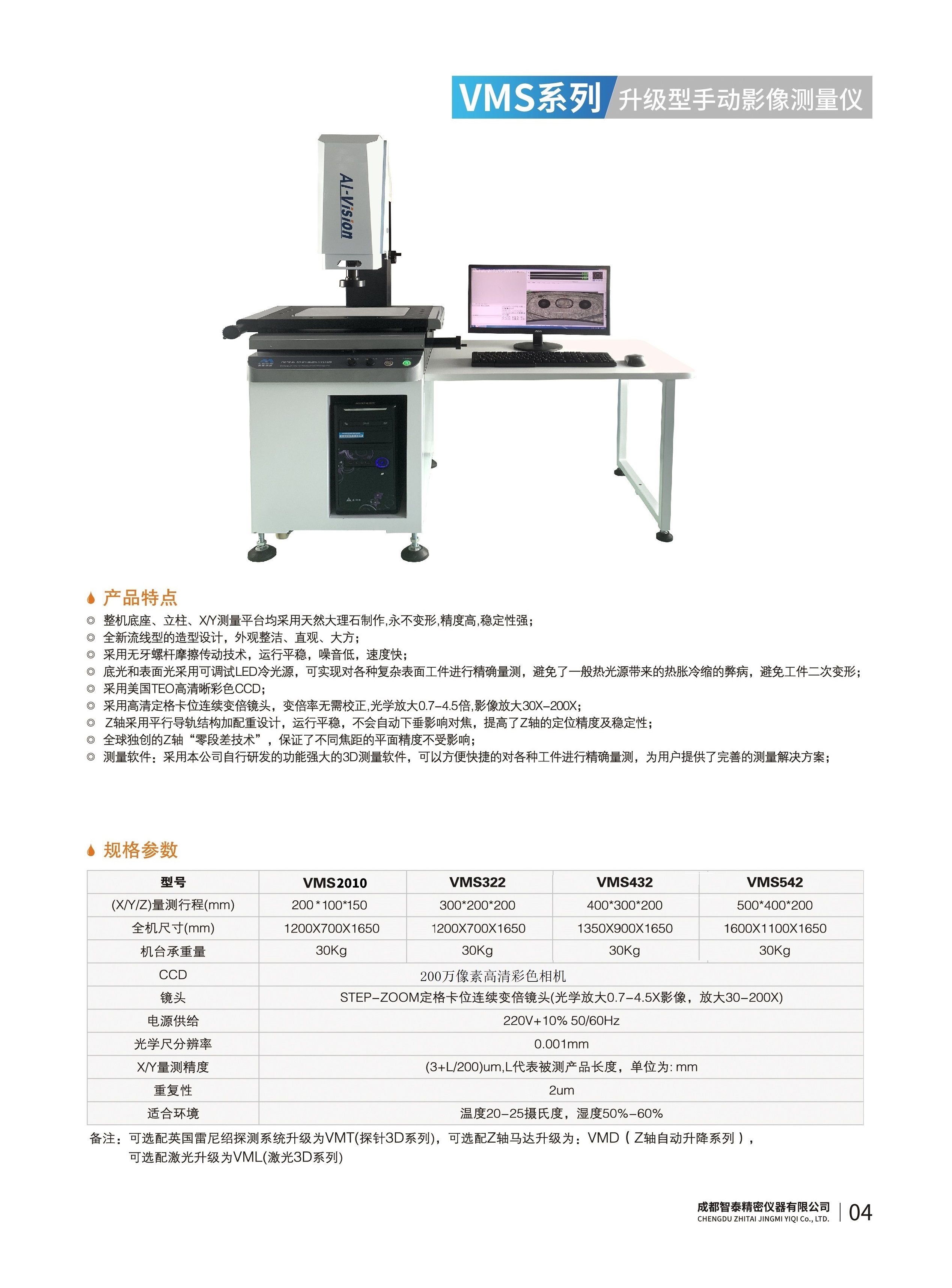 成都智泰精密儀器有限公司專注于精密測量儀器,人工智能,智能制造領域,專業(yè)從事智能視覺自動化檢測解決方案的貿易型企業(yè)。公司成立于2011年,位于天府之國成都,現有行業(yè)精英十余人,辦公倉儲面積200余平米。 公司主要產品為精密光學影像測量儀,精密輪廓形狀測量儀,精密機器人定位系統,精密智能視覺尺寸檢測儀器,精密表面缺陷智能檢測設備,工業(yè)工程特種機器人。 公司憑借過硬的技術實力和產品方案,率先進入智能視覺自動化檢測領域,推廣以精密智能視覺自動化檢測為基礎的機器人自動化應用,公司不斷整合上下游的資源,擁有巨大的全產業(yè)鏈優(yōu)勢??蛻羧后w覆蓋了我國精密制造業(yè)的多數領域,包括航空、航天、軍工、汽車、新能源、光伏、食品,精密電子、精密機械、模具、PCB、LCD、五金、塑膠、醫(yī)療、教育、計量及科研院所等行業(yè)。 公司創(chuàng)新的產品能滿足生產與制造行業(yè)客戶的要求,訓練有素的工程師能及時提供多種技術服務,如解...